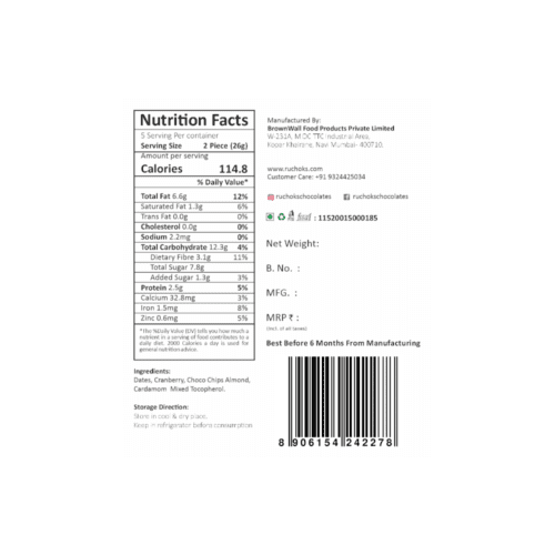 Dates, Cranberry, Choco Chips Almond, Cardamom, Mixed Tocopherol