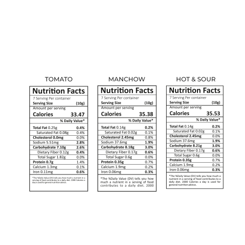 Tandoori Makhana – Makhana (Popped lotus Seeds), Edible Oil, Maltodextrin, Dextrose, Sugar, Tomato Powder, Dehydrated Garlic Powder, Onion Powder, Tandoori Masala Blend, Spices & Condiments (Red Chilli Powder, Cumin Seeds Powder, Coriander Powder, Black Cardamom, Black Pepper, Cinnamon & Clove), Iodized Salt