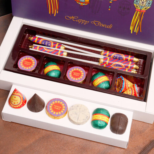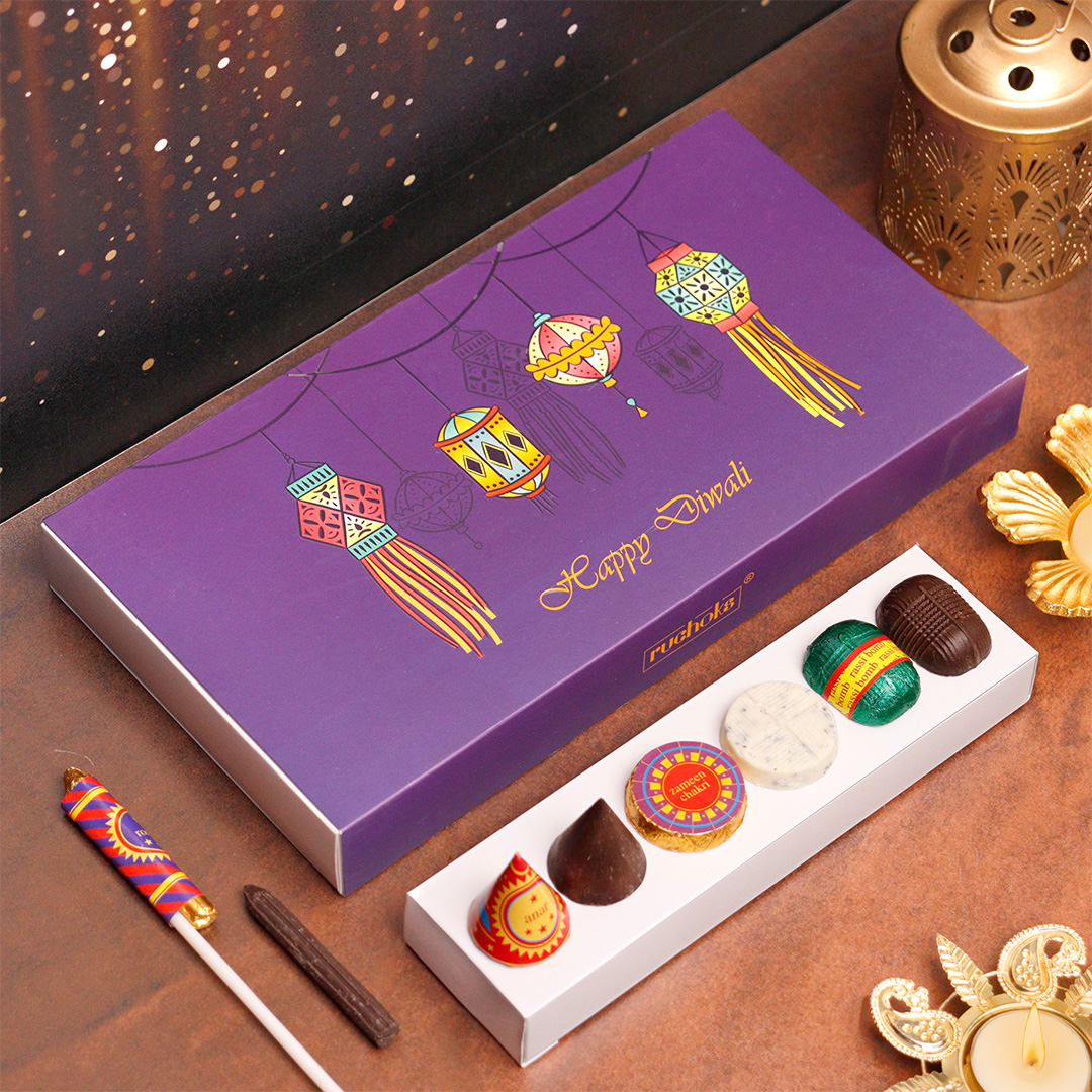 Diwali is incomplete without gifts and chocolates for your loved ones. This festive season, indulge in luxury with our Ruchoks Cracker Chocolates Diwali Gifting Pack. Celebrate a ‘SMOKE-FREE DIWALI’ with our unique, delectable cracker-shaped chocolates, available in delicious flavors. Packaged elegantly, these chocolates are the perfect blend of taste, tradition, and festivity. Share the sweetness, spread the light. Happy Diwali!”
