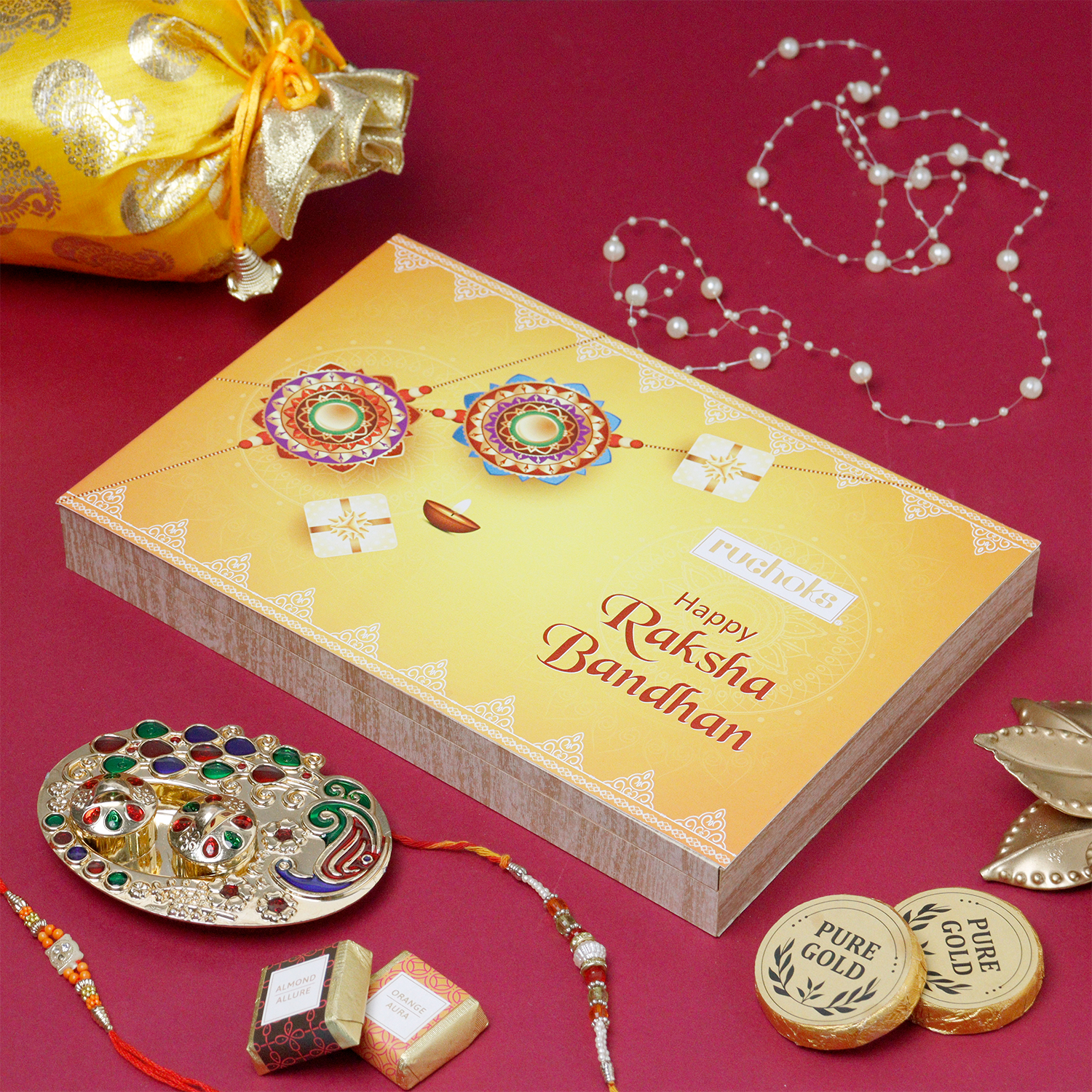 This Premium Rakhi Wooden Hamper is a heartwarming expression of love and affection, designed to make your Rakhi celebrations truly memorable. Share the joy and make this festival of love even more special with our exceptional offering.
